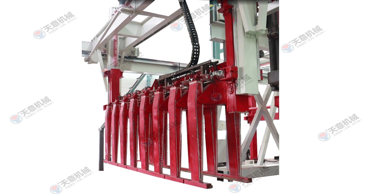 翻轉(zhuǎn)吊機:抓取模箱翻轉(zhuǎn)90°,側(cè)立在切割小車上進行切割;切割工段空翻脫模機將??蚍D(zhuǎn)90°,放在切割小車支座上進行脫模,脫模后的??蚺c清理后的側(cè)模板進行合模,合膜后的空模框被吊運至模具回程軌道上進行涂油處...